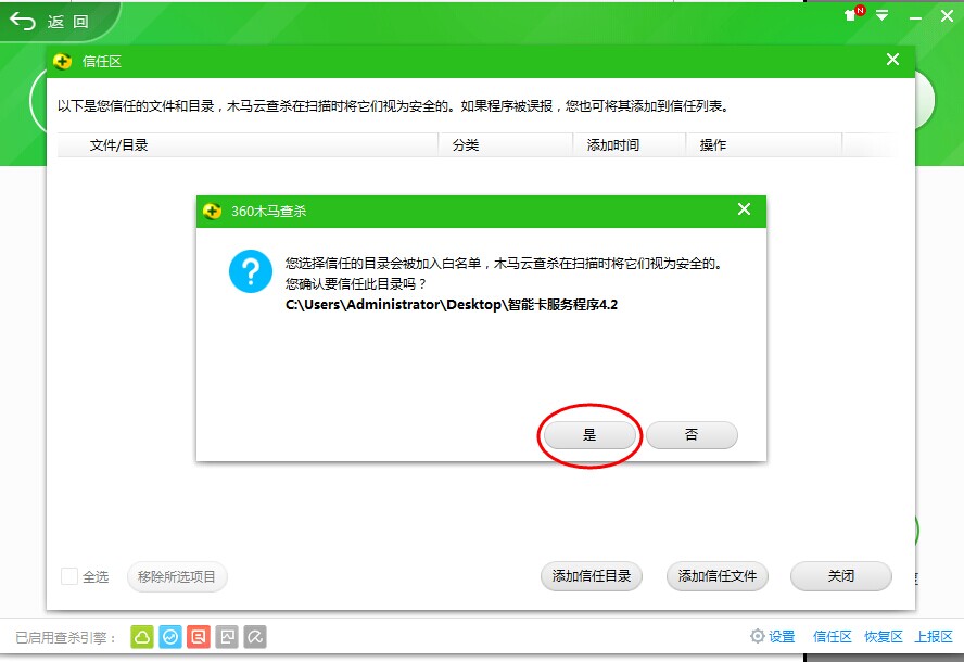 點擊添加信任目錄,找到加密鎖服務程序文件夾,選中然后點擊確定