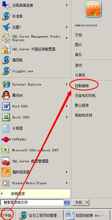 點擊開始菜單---控制面板