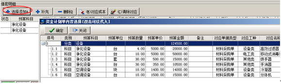 例如下圖所示:預(yù)算分類為設(shè)備,明細(xì)科目為凈化設(shè)備,對應(yīng)的名稱可以為高效過濾器、移動式消毒車、烘手器等。