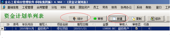 是在資金計劃列表中,找到相應(yīng)的資金計劃單,然后點【統(tǒng)計】按鈕,就會彈出對應(yīng)的統(tǒng)計表。如下圖: