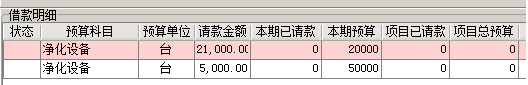 我們選擇其中兩項,高效過濾器和移動式消毒車,其中高效過濾器預(yù)算金額為20000元、移動式消毒車預(yù)算費用為50000元,當(dāng)我們的請款金額小于預(yù)算金額時候,顯示為正常的白色。