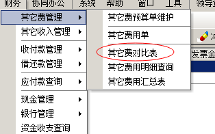 預(yù)算與實(shí)際對比,在財(cái)務(wù)菜單中第一項(xiàng)【其他費(fèi)管理】,【其他費(fèi)對比表】中查詢。