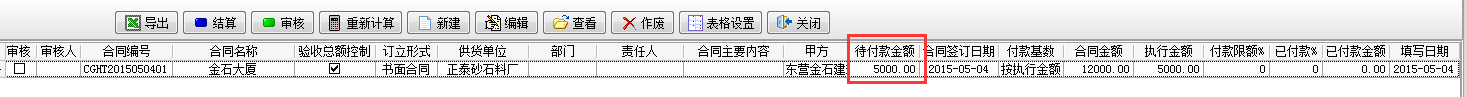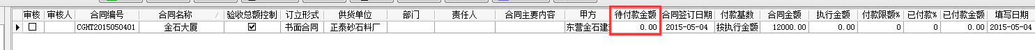 當我們選擇執行金額時,沒有驗收記錄,待付款金額顯示為零。