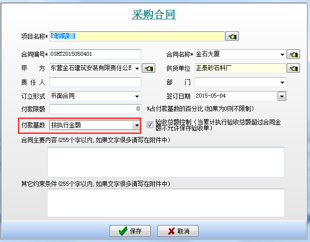 合同量控制驗收上報量(成本驗收控制)