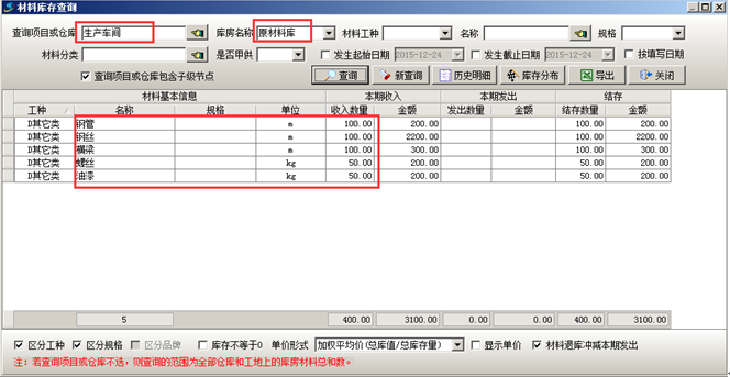 材料采購完成之后可在對應的材料庫中查到相應的庫存,如圖: