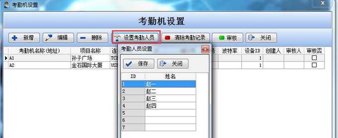 由于在考勤機中輸入員工名稱并不是很方便,可以現在考勤機中錄入ID號和指紋。然后通過考勤機設置中設置考勤人員在電腦上輸入員工名稱。