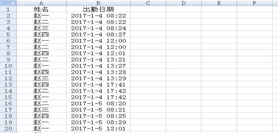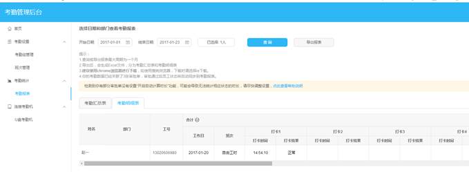 選擇好時間段,和考勤員工后,點擊查詢按鈕,出現如下圖所示
