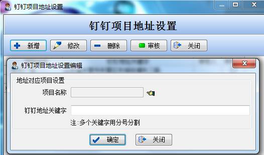 點擊新增選擇對應的項目名稱和填寫對應的釘釘地址關鍵字。如果有多個關鍵字用分號分開。