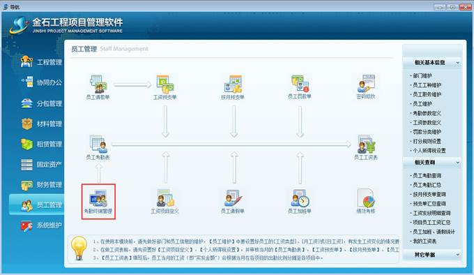 以上操作可參見教學視頻“金石工程項目管理軟件考勤管理 ”。
