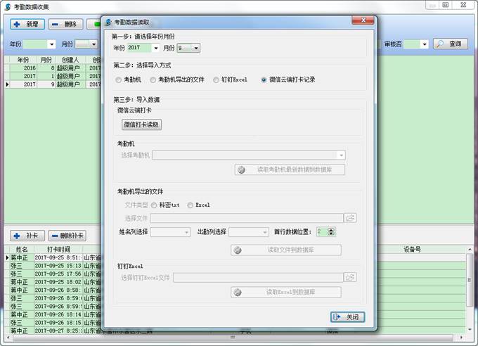 點擊新增,彈出考勤數據讀取界面,如下圖,