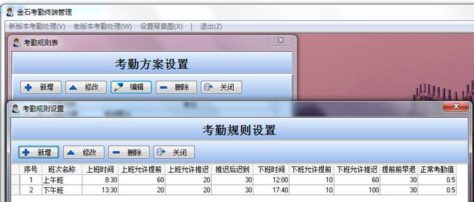 點擊新增,增加新的考勤方案,然后點擊修改,設置方案中各個參數。