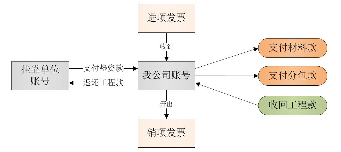 1、由于“營改增”后,為實現(xiàn)進(jìn)項發(fā)票的沖抵、我們會要求掛靠單位給我們提供進(jìn)項發(fā)票,他所購買的材料款、收到的工程款必須走我方的公司賬戶。材料供應(yīng)商開具的發(fā)票抬頭也必須是我方的單位名稱,這樣就使得“發(fā)票”、“付款”兩者一致。