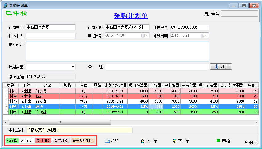 4、材料超預(yù)算實時提醒