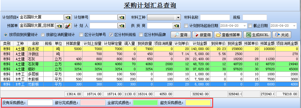 可實時查詢項目的預(yù)算量、計劃上報量、計劃審定量、總庫調(diào)入量、采購到貨量、項目消耗量,六種數(shù)據(jù)的動態(tài)變化。
