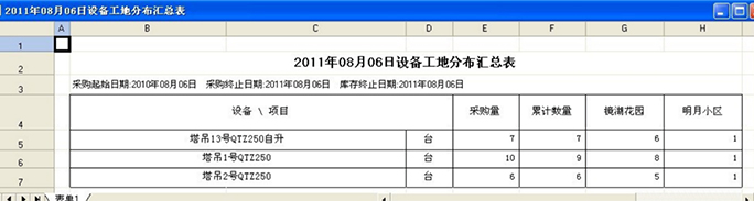 除了設(shè)備調(diào)撥單列表之外,系統(tǒng)中還有更全面的設(shè)備工地分布表。可以非常直觀的看到企業(yè)的固定資產(chǎn)在各個(gè)工地的分布情況。