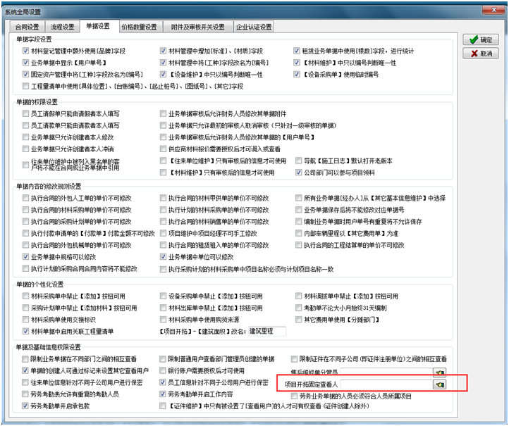 還可以在【系統(tǒng)維護(hù)】-【系統(tǒng)全局設(shè)置】-【單據(jù)設(shè)置】設(shè)置項(xiàng)目開拓固定查看人,設(shè)置好后,設(shè)置的人員無需每次設(shè)定查看權(quán)限。