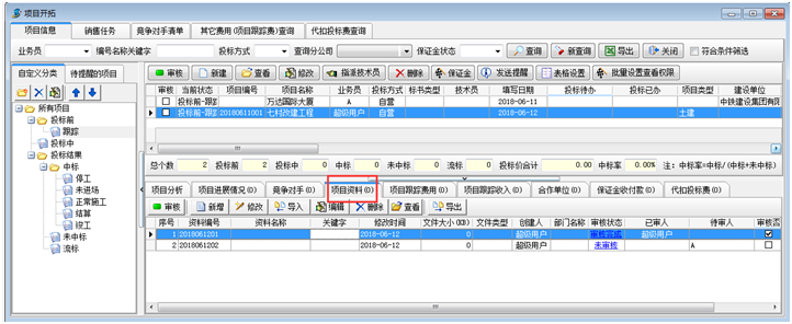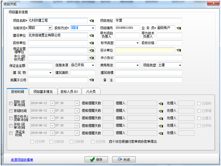 項(xiàng)目狀態(tài)建好之后,有需要投標(biāo)的項(xiàng)目創(chuàng)建項(xiàng)目開拓信息。