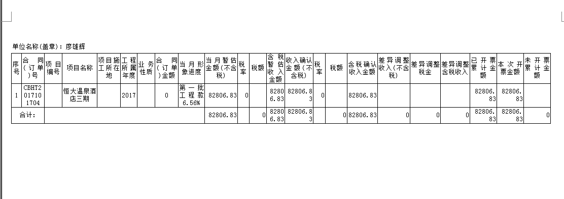 6.工程項(xiàng)目管理軟件打印收入調(diào)整確認(rèn)表