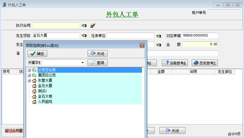 工程項目管理軟件設置項目隱藏后錄單據時不顯示隱藏項目,如下圖