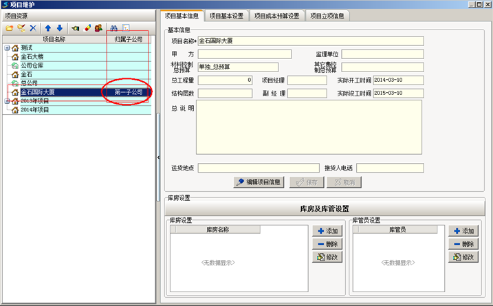 工程管理軟件中設置完成之后,重新登錄陳勝的賬戶,查看該員工的項目權限,項目維護中顯示的項目只有金石大樓這個項目