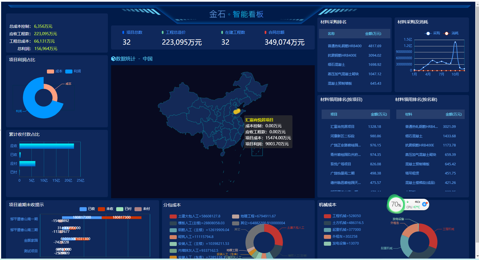 應廣大客戶的建議反饋及市場調研結果,金石軟件增加項目智能看板功能 。