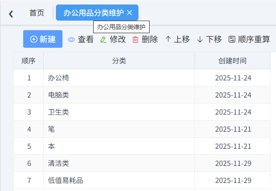 辦公用品分類(lèi)維護(hù)是根據(jù)公司常用辦公用品區(qū)分后得出的類(lèi)別,如下圖所示