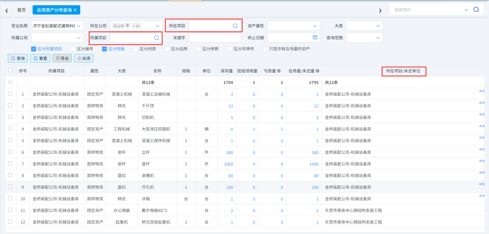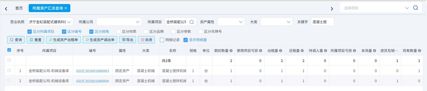 資產(chǎn)歸屬權(quán)項目的庫存量及租還情況進行精準查詢