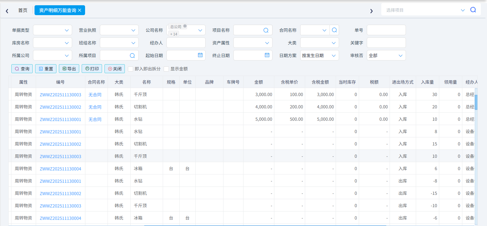 (2)資產(chǎn)明細萬能查詢