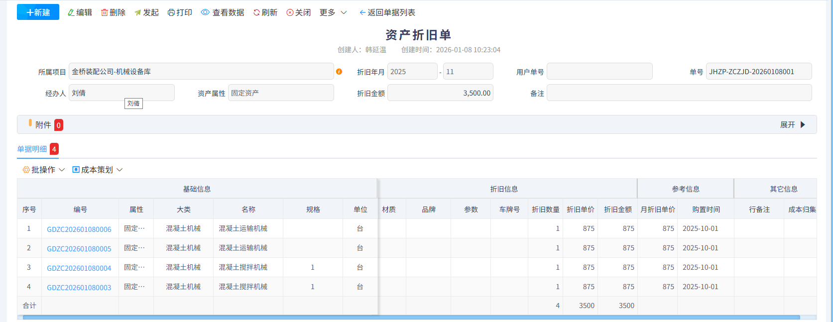 有關(guān)折舊成本信息項?:包括原值、折舊方法、累計折舊、凈值及殘值。
