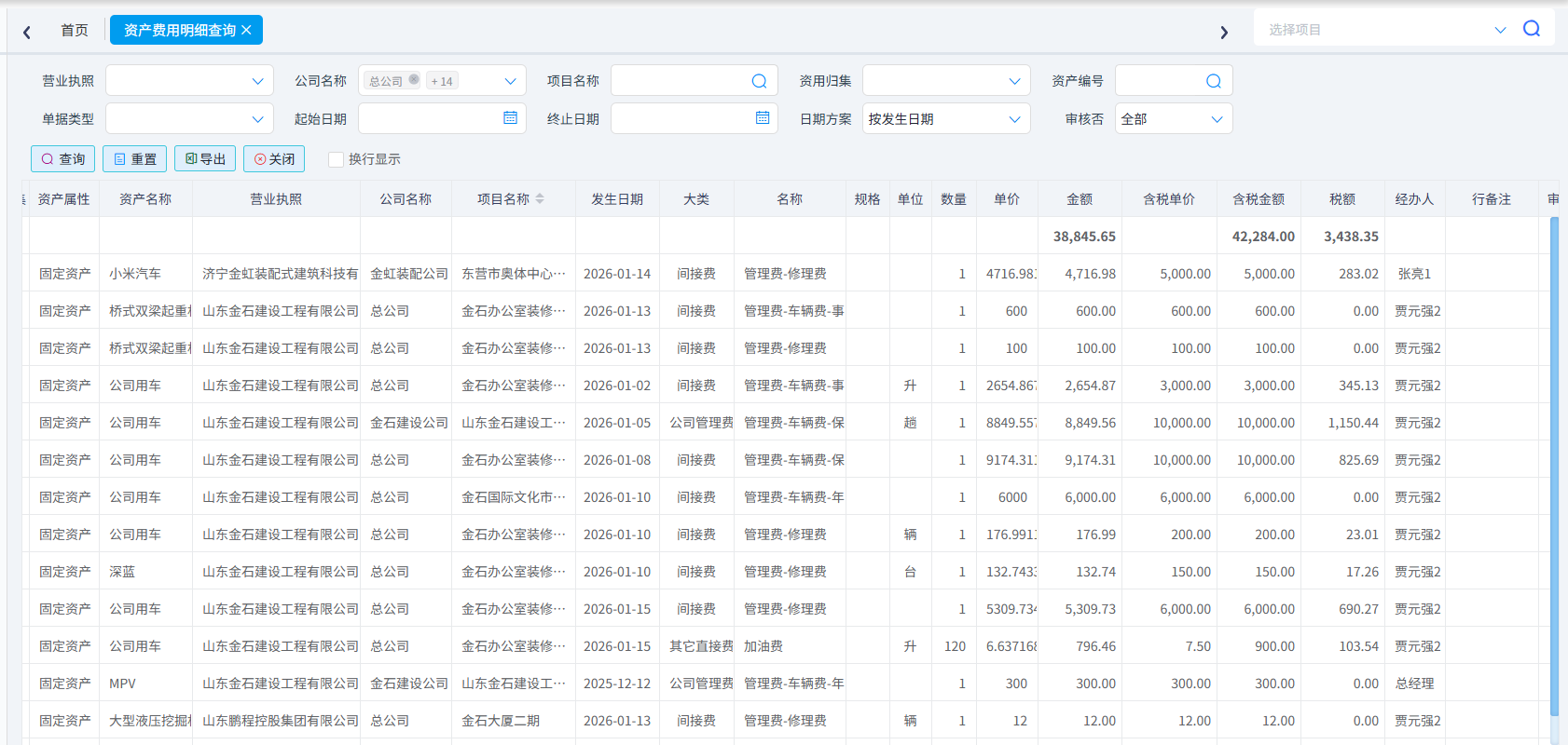(6)資產(chǎn)費用明細查詢