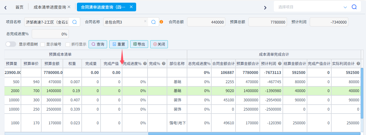 可以根據需求統計成本清單進度、合同清單進度(四算對比)、項目部位實際發生以及部位分解預算與實際發生。