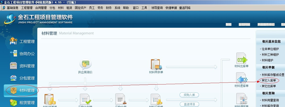 材料庫存通過其他入庫單來錄入庫存數量。如下圖: