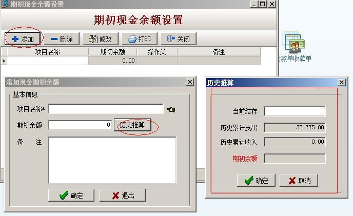 在登記時,把期初賬款錄入到,期初余額中即可。另有歷史推算功能,可根據歷史發生的業務單據以及現在余額推算出期初余額。如下圖: