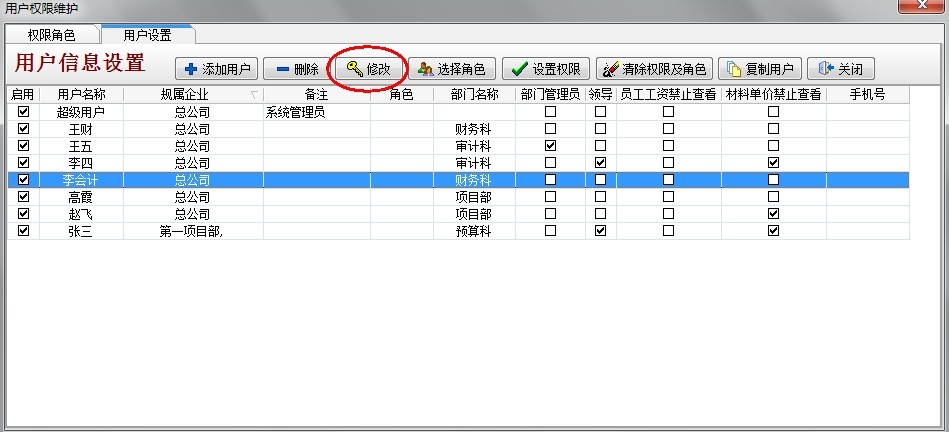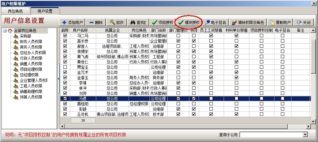 其他人員同樣的設置,對于相同部門權限相同的人員賦予同樣的角色即可。