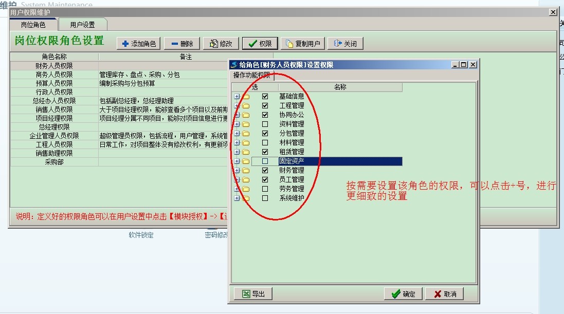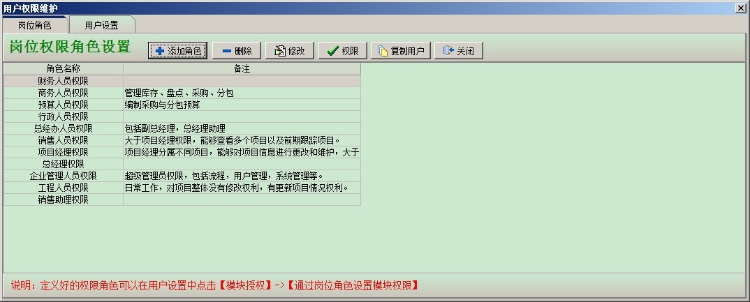 現在介紹一下2、按崗位角色設置權限: