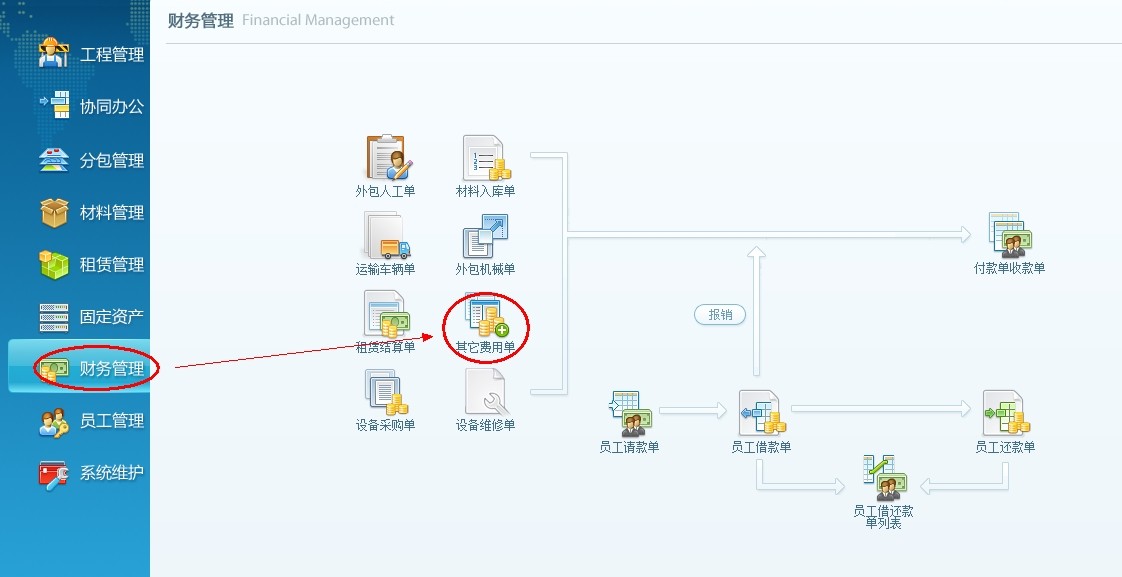 投標項目的費用錄入流程:導航欄財務(wù)管理---其它費用單---付款單