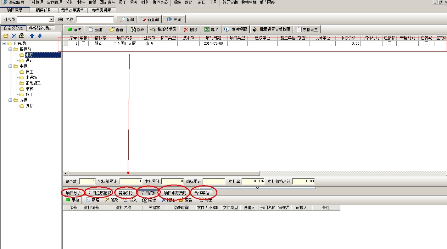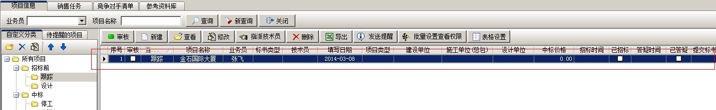 項目開拓建立之后,審核,然后可以錄入投標項目的一些基本資料