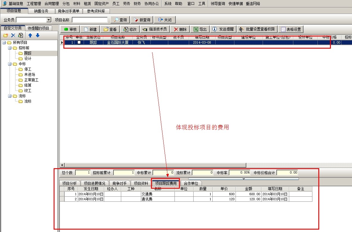 項目中標前跟蹤費用的管理