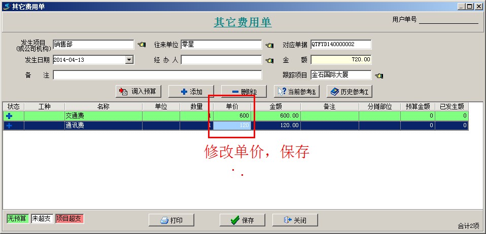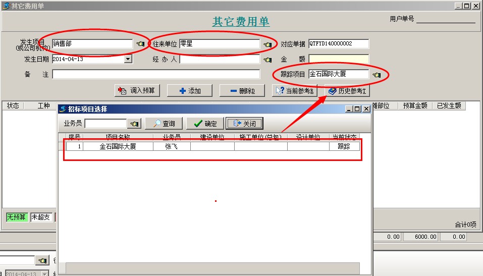2、投標之前發(fā)生的費用,可以錄入【其它費用單】。